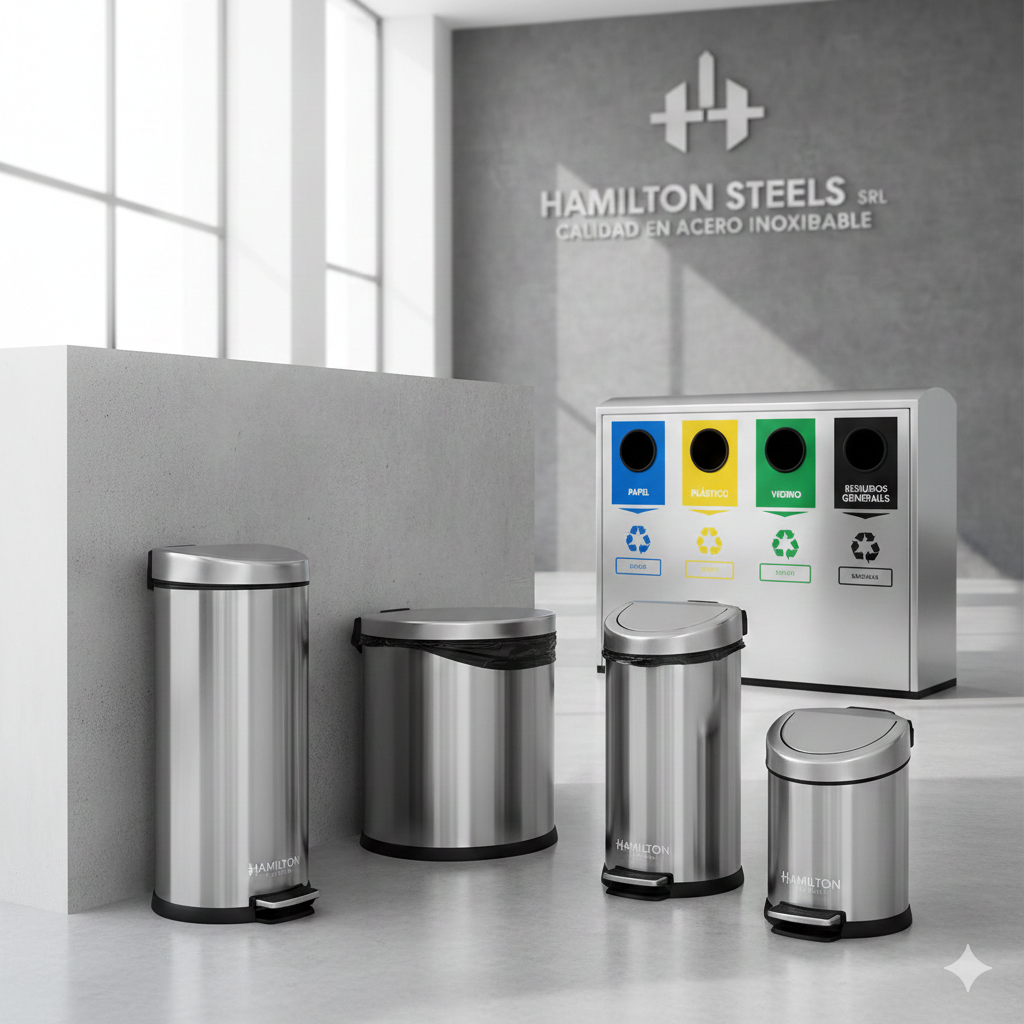 El uso de tachos para reciclar fabricados en acero inoxidable AISI 304 permite una correcta clasificación de residuos y promueve una cultura ecológica en oficinas, restaurantes, centros comerciales y espacios públicos. Los contenedores de acero inoxidable son altamente resistentes a la corrosión, fáciles de limpiar y aptos para uso intensivo, incluso en exteriores.