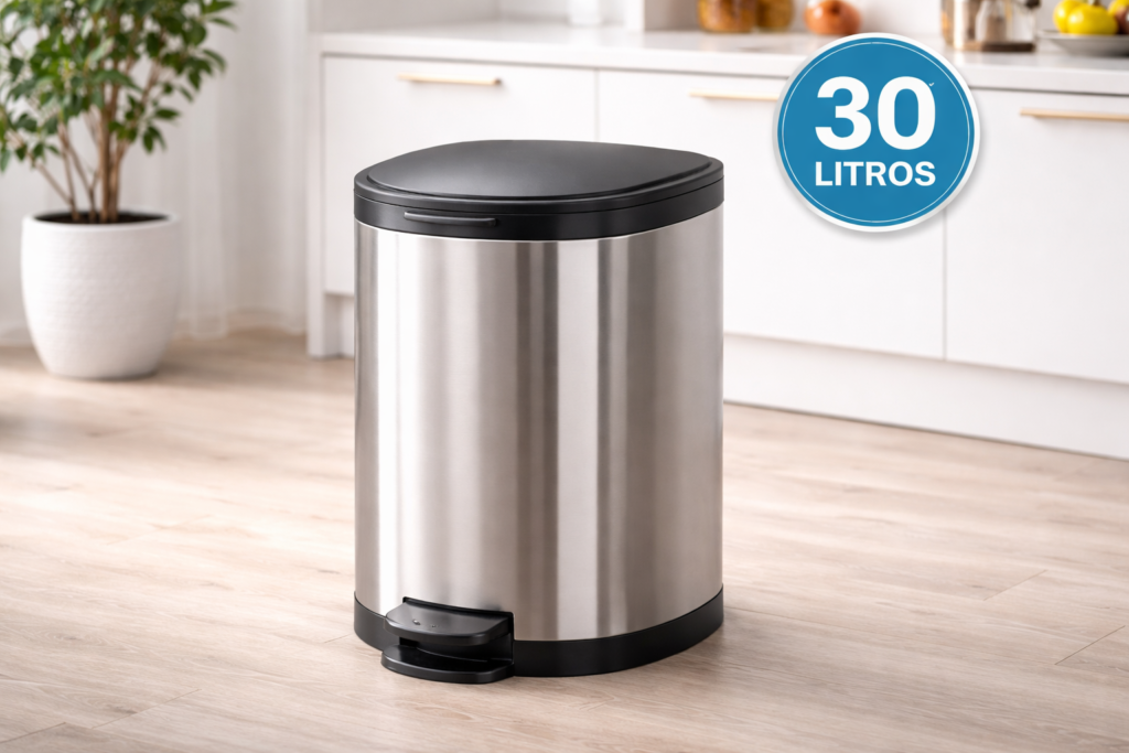 Perfecto para familias o negocios. El tacho de basura 30 litros ofrece mayor capacidad sin ocupar demasiado espacio.