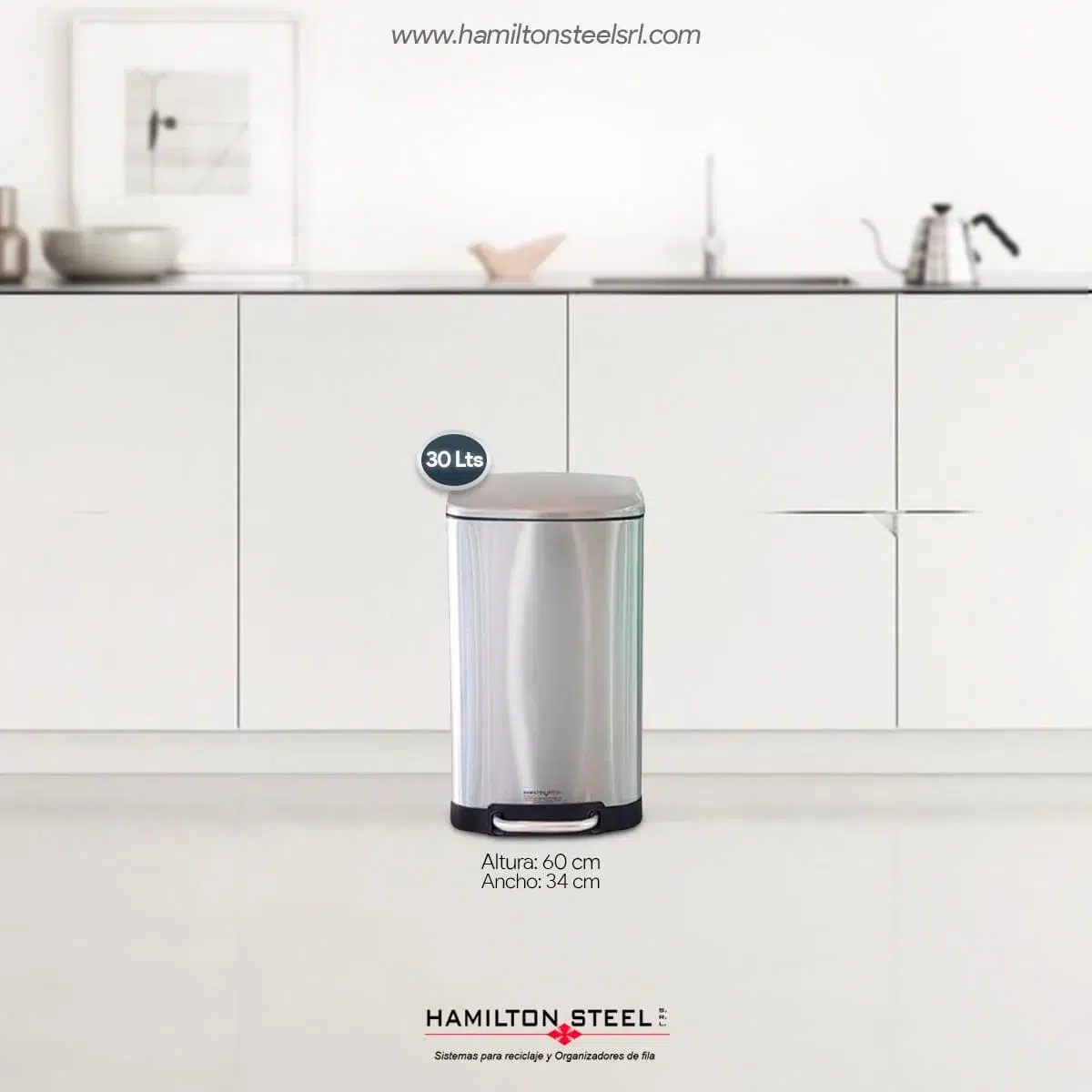 Tacho De Basura Acero 30 Litros Para Hogar y Baños