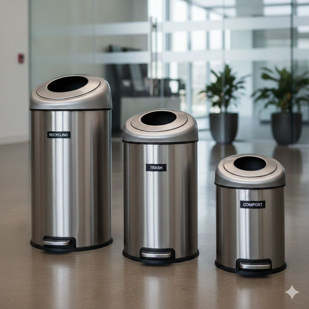 La sostenibilidad es hoy una prioridad empresarial. Por ello, los tachos para reciclar y los tachos de reciclaje en acero inoxidable permiten clasificar residuos de manera eficiente y elegante. Existen opciones como: