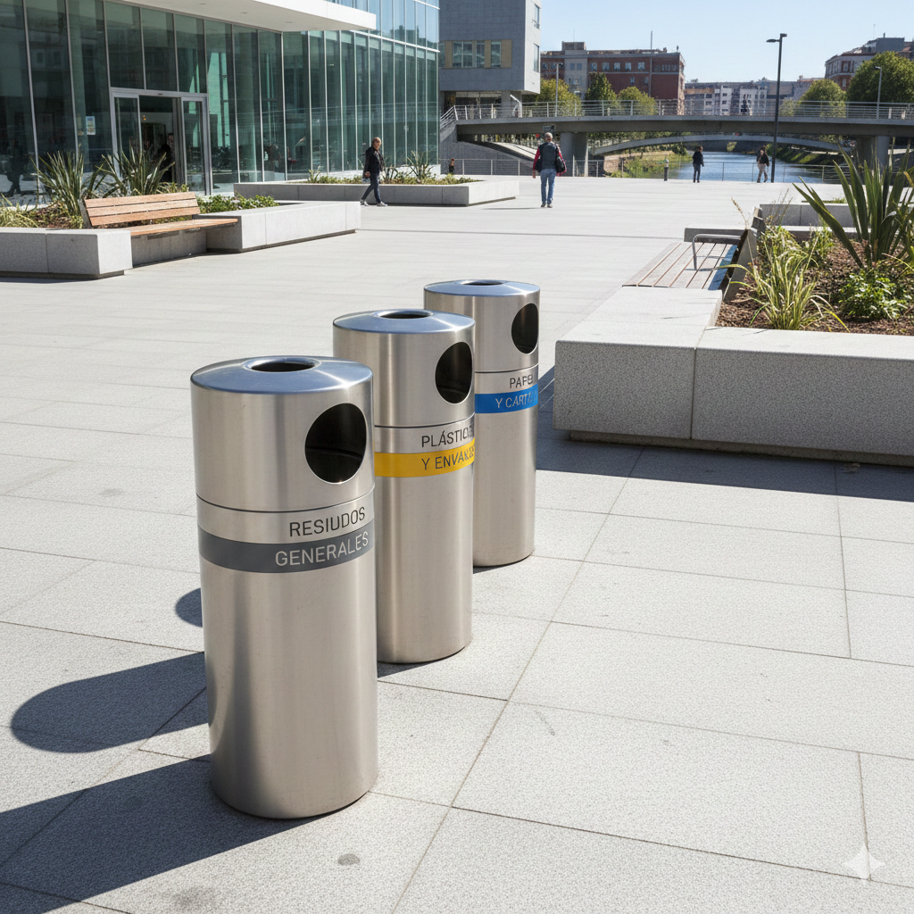 Para exteriores, existen tachos de reciclaje robustos para exterior, resistentes a la intemperie y al uso continuo.